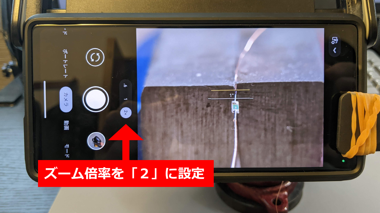 そこで、スマホを操作してズーム倍率を「2」に設定します。