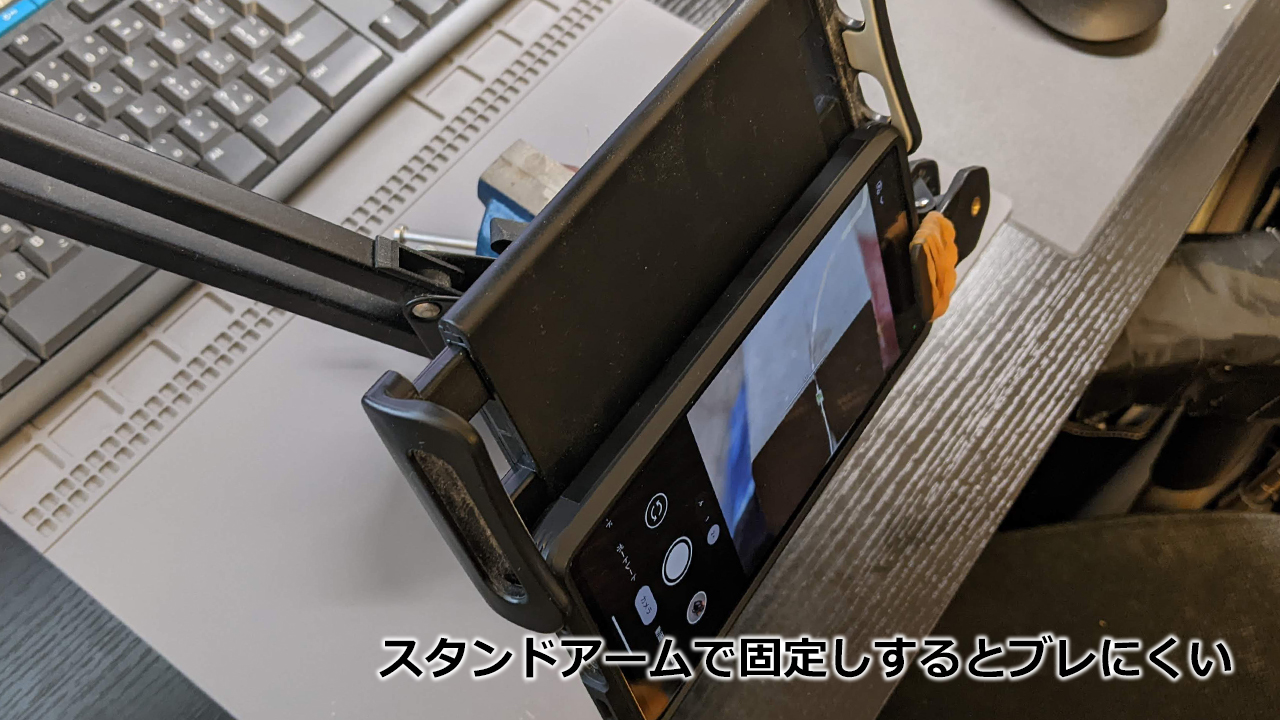 できるだけ手で持って撮影するのではなく、スタンドアーム等でスマホを固定して撮影してください。