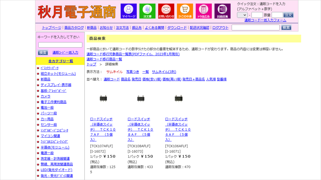現在、秋月電子通商では以下の3種類のロードスイッチを購入することができます。