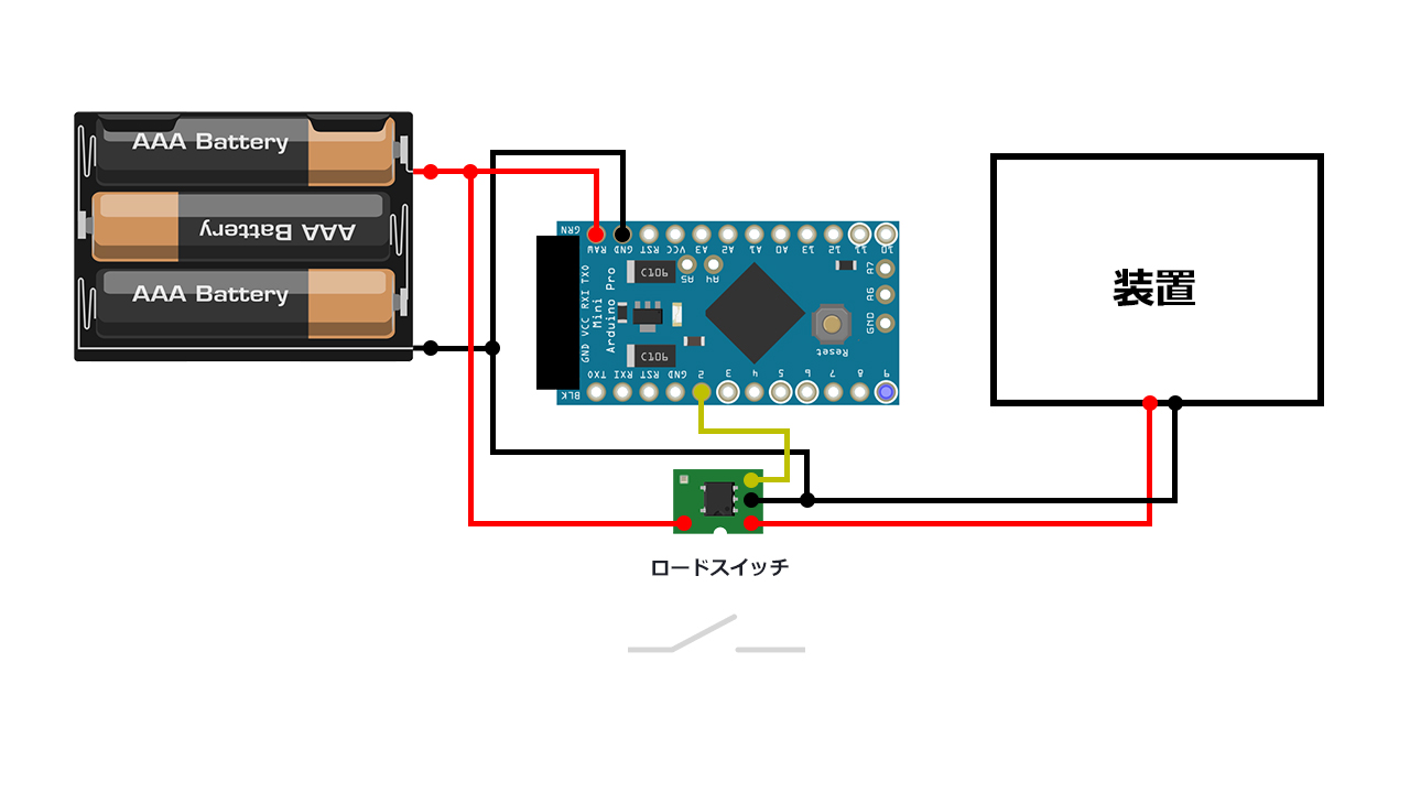 ロードスイッチを使えば、マイコンなどから出力される電気信号を元にして、スイッチをONにすることができます。