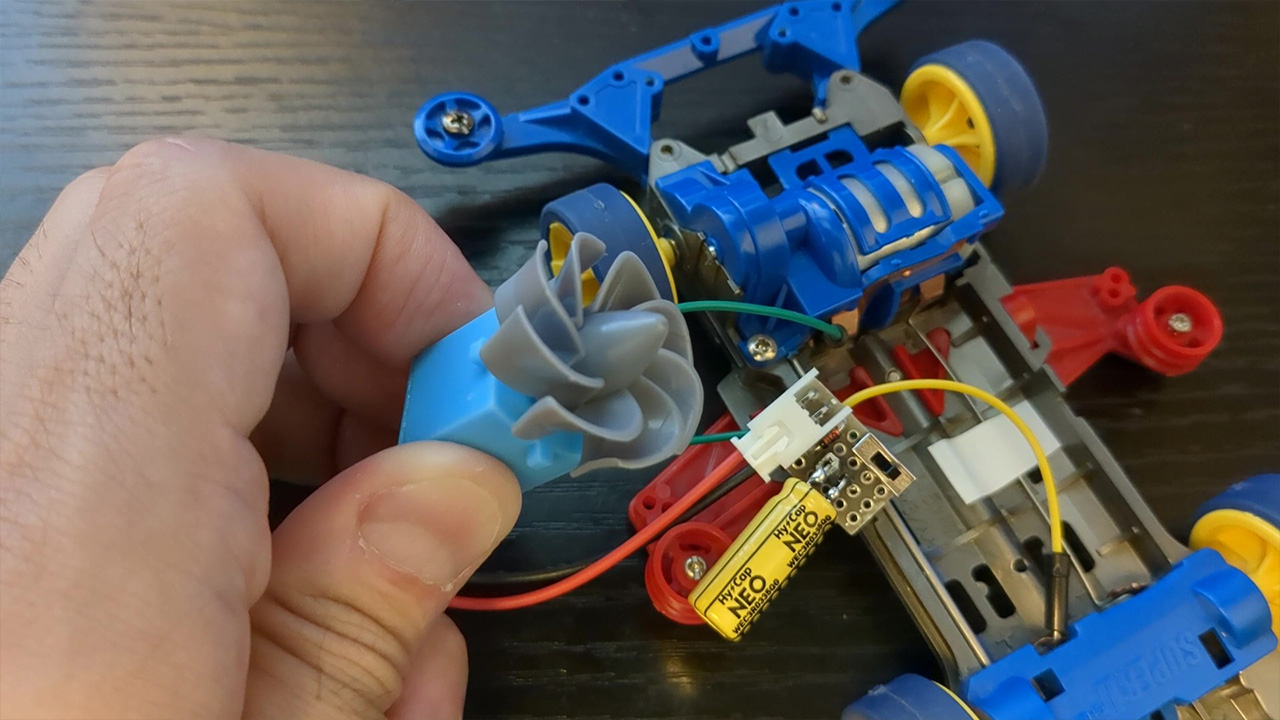 今回は電池を使わず、風力発電で得た電気だけでミニ四駆を動かしてみることにしました。