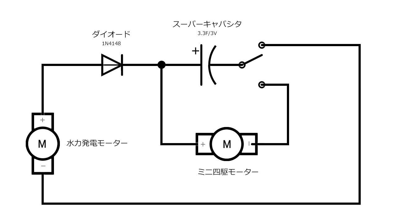※モーターを回すには、普通のコンデンサでは容量不足なので、今回は容量の大きなスーパーキャパシタを使用しています。