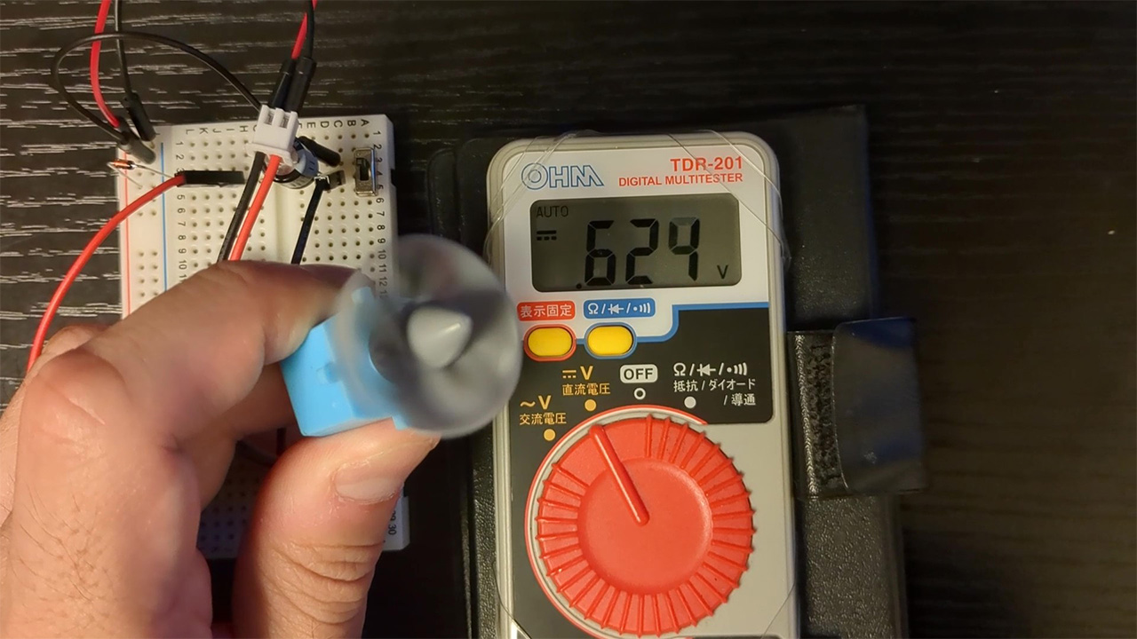 1.8Vを超えたあたりから、どんなに息を吹きかけてもパワー不足でそれ以上は発電できませんでした。