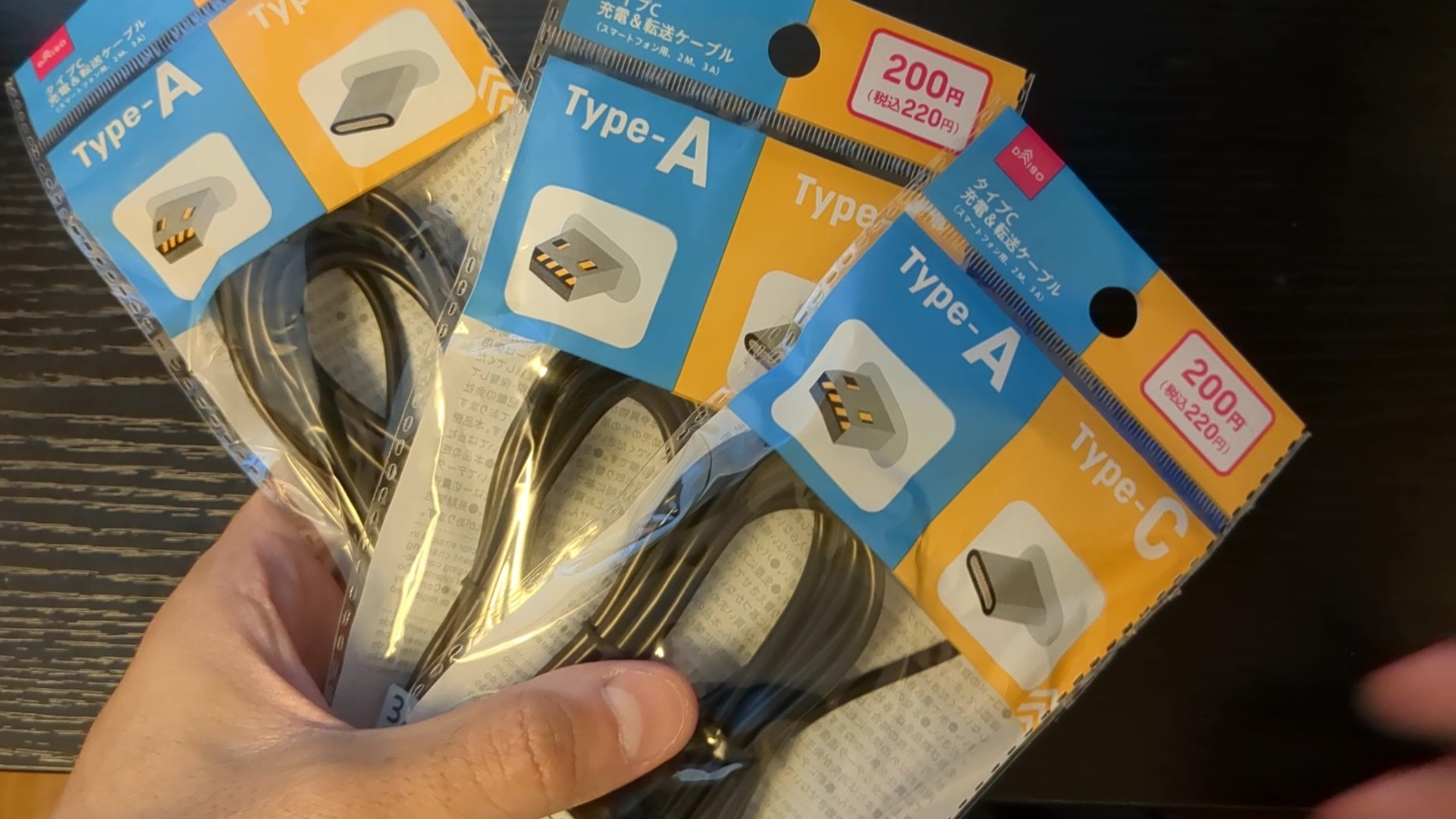 今回は、ダイソーで購入した2mのUSBケーブルを3セット(6m分)購入しました。