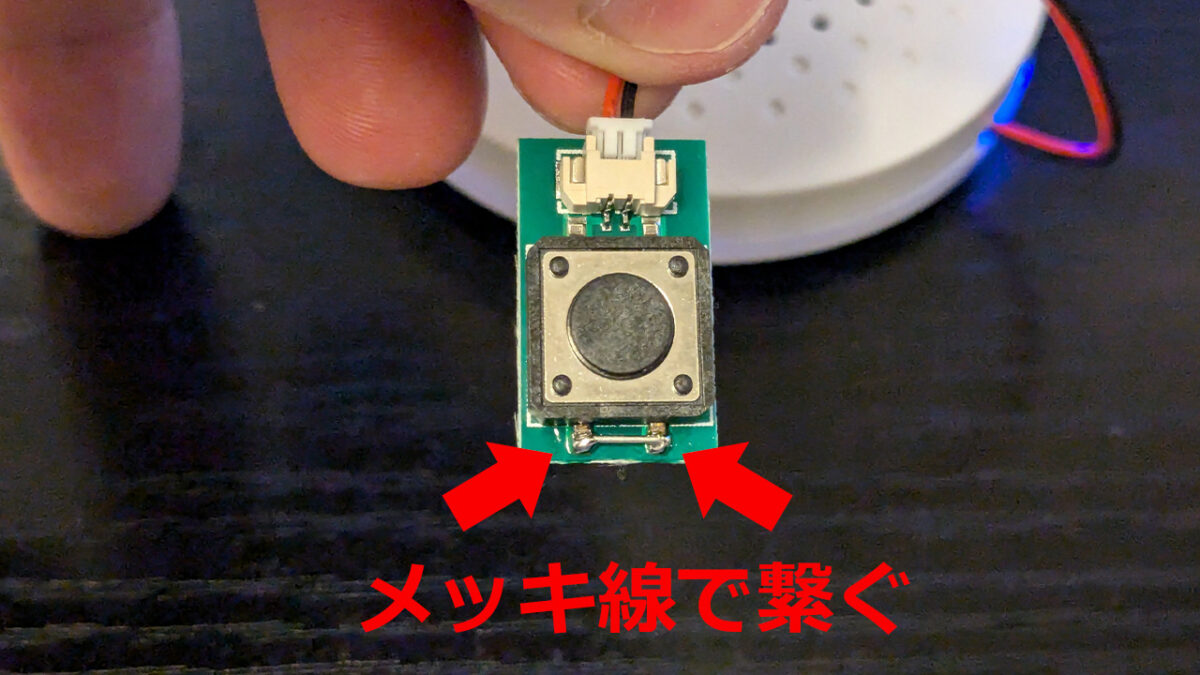 - ボタンが常に押された状態(接点が繋がっている状態)になるようにはんだ付けする