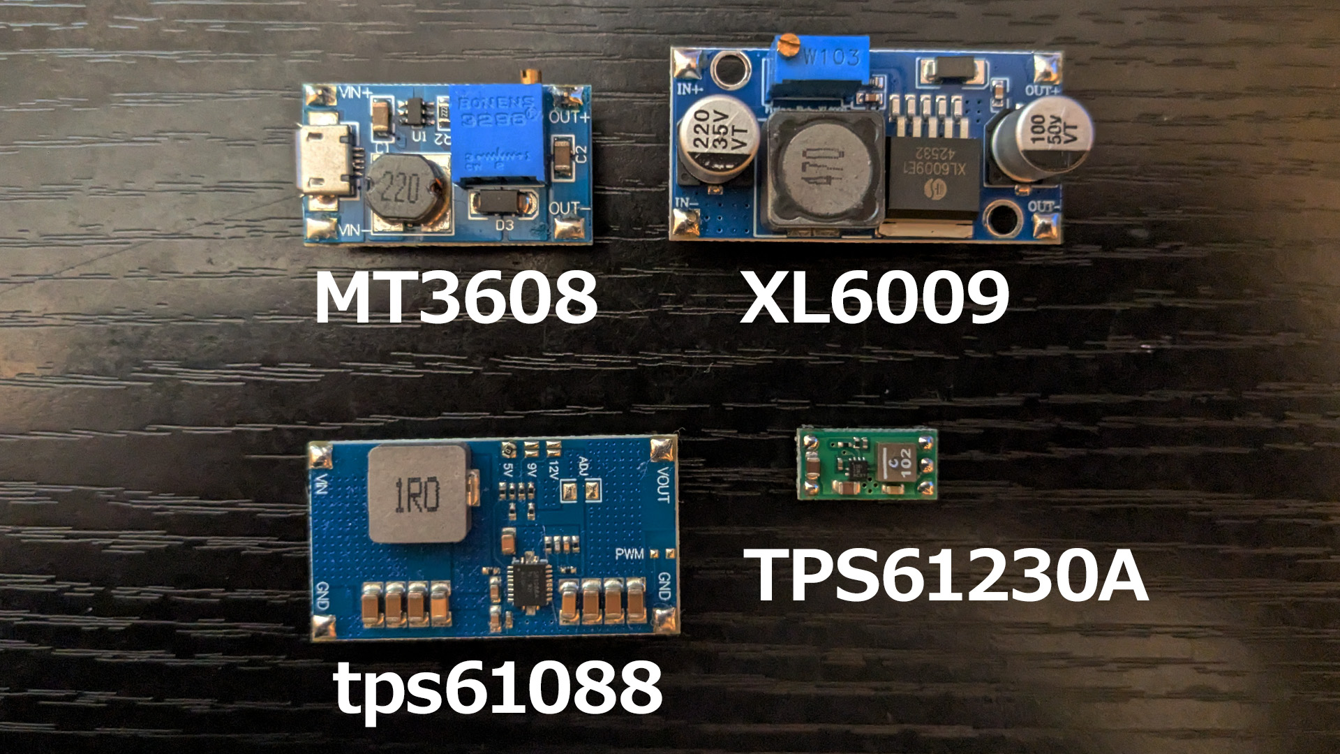 昇圧モジュールが十分な電流を供給できていない可能性もあったため、複数試しました。