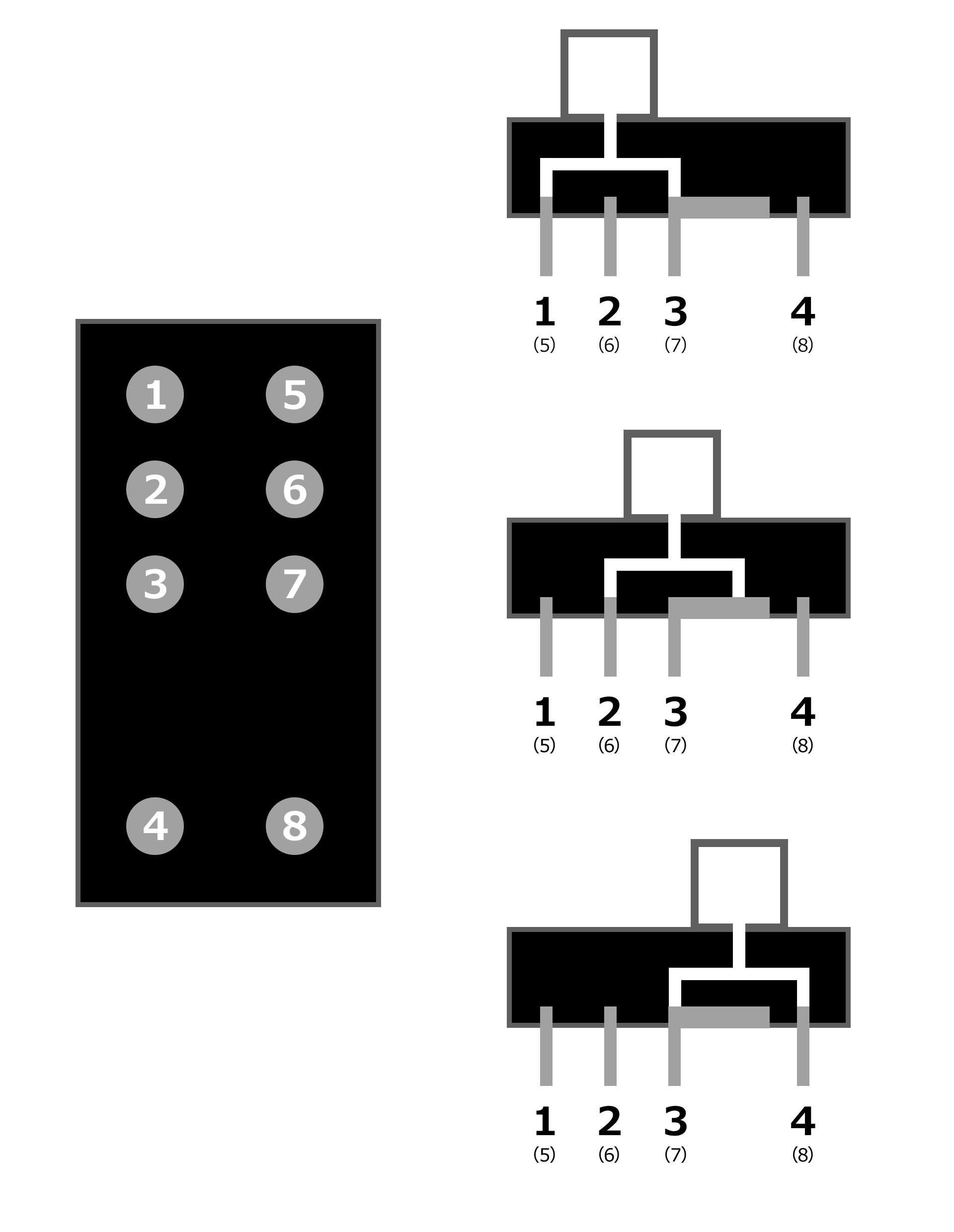 スライドスイッチ(8Pin)の接点・ピン配置図