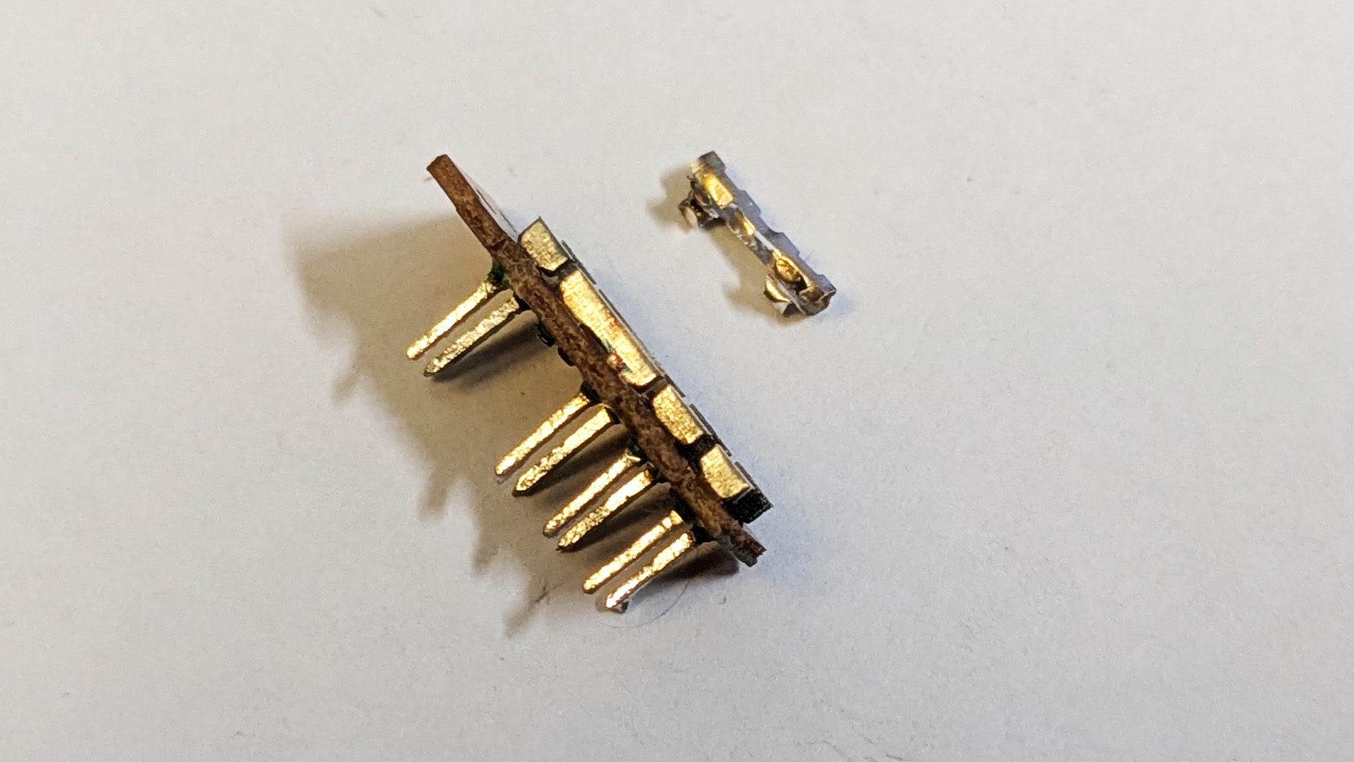エタノールを染み込ませた綿棒で清掃すると接点は復活しましたが、その過程でレールを変形させてしまい、途中で折れてしまいました。