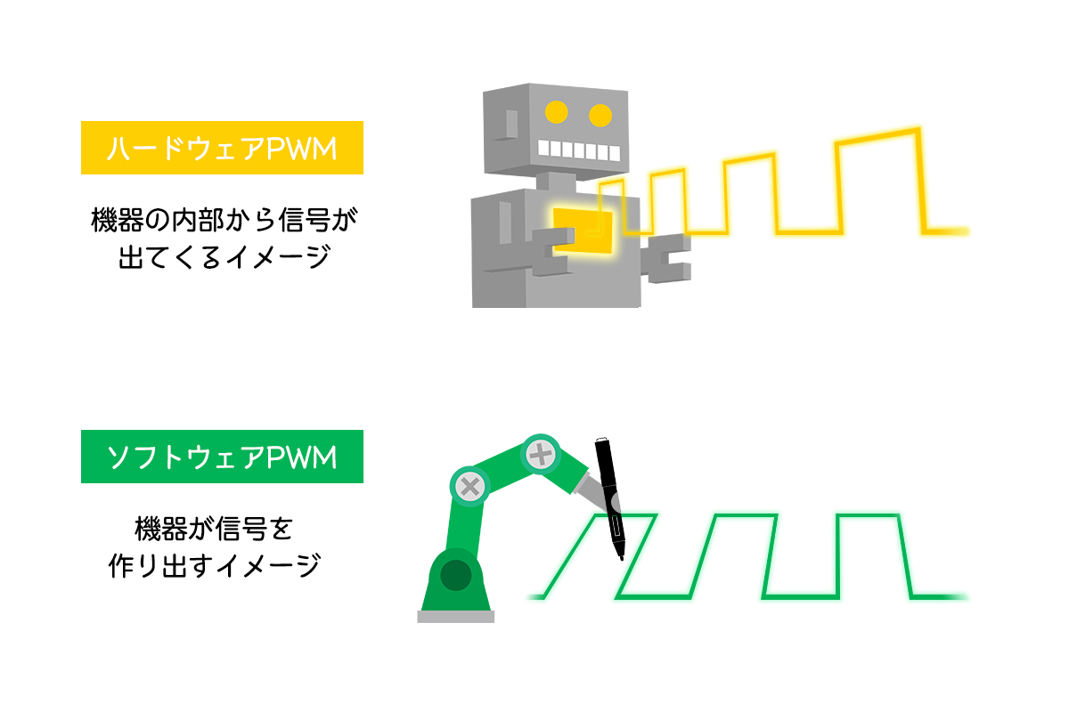- ハードウェアPWMで正確なパルスを出せる → 元々、ラズパイにPWMを出せるGPIOが用意されている